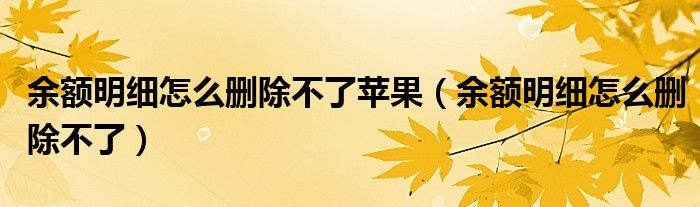 大家好,小晋来为大家解答以下问题,关于余额明细怎么删除不了苹果,余额明细怎么删除不了很多人还不知道,今天让我们一起来看看吧!