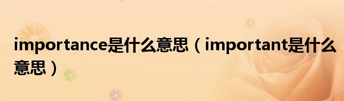 关于importance是什么意思,important是什么意思这个很多人还不知道,今天菲菲来为大家解答以上的问题,现在让我们一起来看看吧!