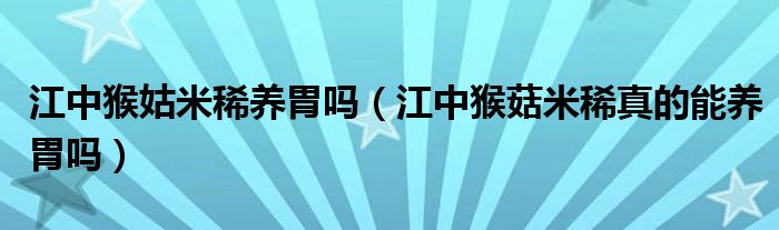 大家好,小晋来为大家解答以下问题,关于江中猴姑米稀养胃吗,江中猴菇米稀真的能养胃吗很多人还不知道,今天让我们一起来看看吧!