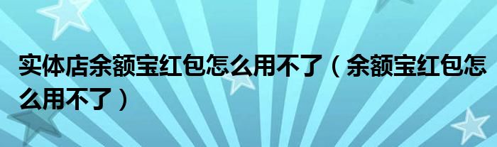 大家好,小晋来为大家解答以下问题,关于实体店余额宝红包怎么用不了,余额宝红包怎么用不了很多人还不知道,今天让我们一起来看看吧!