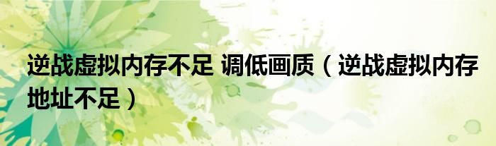 大家好,小晋来为大家解答以下问题,关于逆战虚拟内存不足 调低画质,逆战虚拟内存地址不足很多人还不知道,今天让我们一起来看看吧!