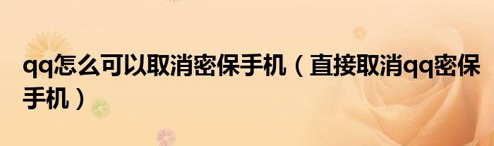 qq怎么可以取消密保手机(直接取消qq密保手机)