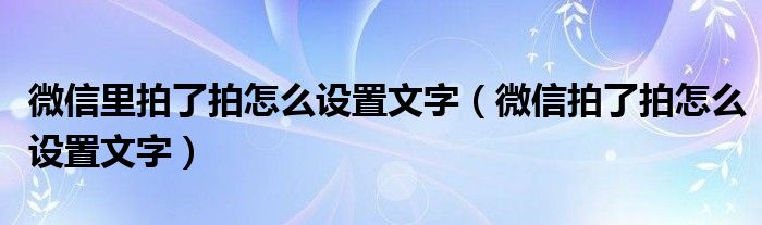 大家好,来宝来为大家解答以下问题,微信里拍了拍怎么设置文字,微信拍了拍怎么设置文字很多人还不知道,今天让我们一起来看看吧!