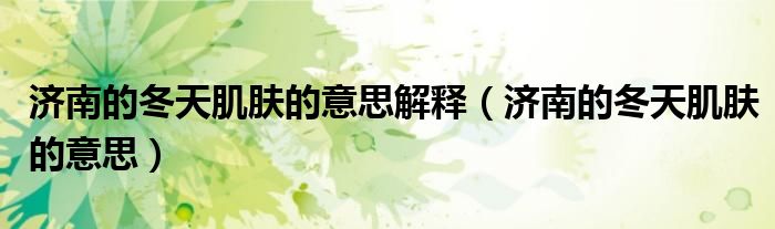 关于济南的冬天肌肤的意思解释,济南的冬天肌肤的意思这个很多人还不知道,今天菲菲来为大家解答以上的问题,现在让我们一起来看看吧!