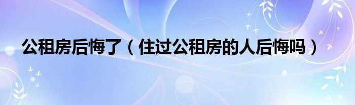 大家好,小晋来为大家解答以下问题,关于公租房后悔了,住过公租房的人后悔吗很多人还不知道,今天让我们一起来看看吧!