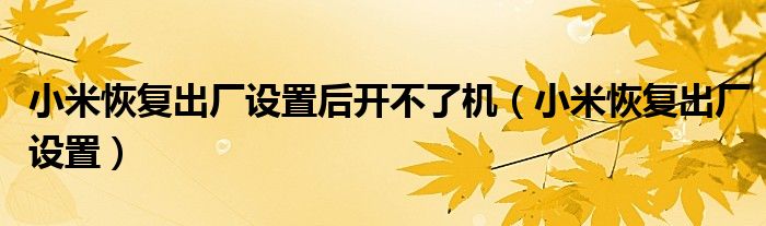 小米恢复出厂设置后开不了机(小米恢复出厂设置)