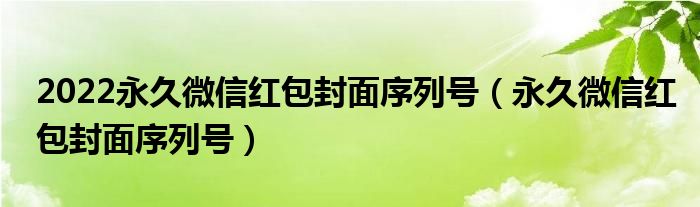 大家好,来宝来为大家解答以下问题,2022永久微信红包封面序列号,永久微信红包封面序列号很多人还不知道,今天让我们一起来看看吧!