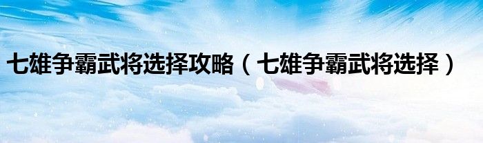 大家好,来宝来为大家解答以下问题,七雄争霸武将选择攻略,七雄争霸武将选择很多人还不知道,今天让我们一起来看看吧!