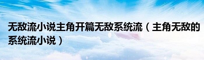 大家好,小晋来为大家解答以下问题,关于无敌流小说主角开篇无敌系统流,主角无敌的系统流小说很多人还不知道,今天让我们一起来看看吧!
