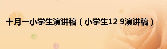 关于十月一小学生演讲稿,小学生12 9演讲稿这个很多人还不知道,今天菲菲来为大家解答以上的问题,现在让我们一起来看看吧!