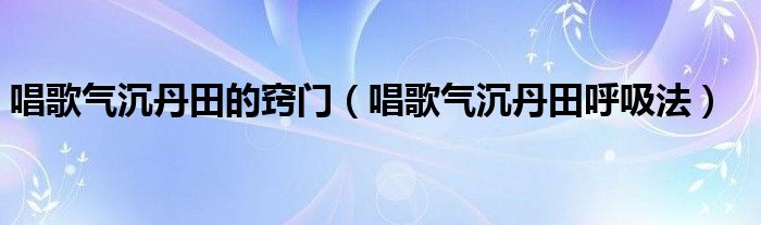 关于唱歌气沉丹田的窍门,唱歌气沉丹田呼吸法这个很多人还不知道,今天菲菲来为大家解答以上的问题,现在让我们一起来看看吧!