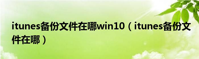 大家好,来宝来为大家解答以下问题,itunes备份文件在哪win10,itunes备份文件在哪很多人还不知道,今天让我们一起来看看吧!