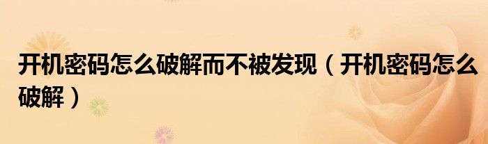 大家好,来宝来为大家解答以下问题,开机密码怎么破解而不被发现,开机密码怎么破解很多人还不知道,今天让我们一起来看看吧!