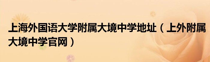 关于上海外国语大学附属大境中学地址,上外附属大境中学官网这个很多人还不知道,今天菲菲来为大家解答以上的问题,现在让我们一起来看看吧!