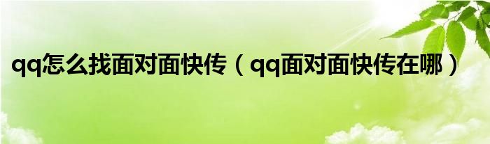 大家好,小晋来为大家解答以下问题,关于qq怎么找面对面快传,qq面对面快传在哪很多人还不知道,今天让我们一起来看看吧!
