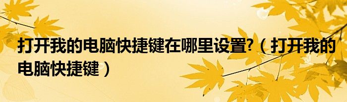 关于打开我的电脑快捷键在哪里设置?,打开我的电脑快捷键这个很多人还不知道,今天菲菲来为大家解答以上的问题,现在让我们一起来看看吧!