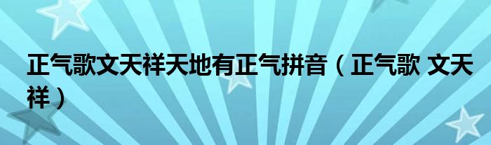 大家好,小晋来为大家解答以下问题,关于正气歌文天祥天地有正气拼音,正气歌 文天祥很多人还不知道,今天让我们一起来看看吧!