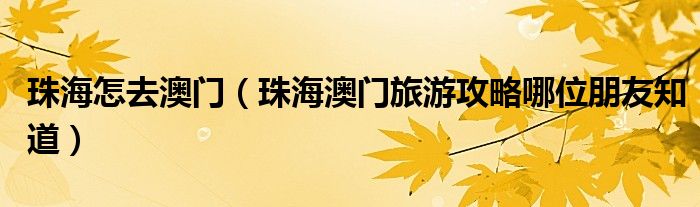 关于珠海怎去澳门,珠海澳门旅游攻略哪位朋友知道这个很多人还不知道,今天菲菲来为大家解答以上的问题,现在让我们一起来看看吧!