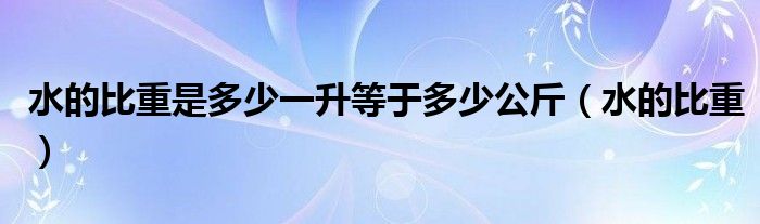 大家好,小晋来为大家解答以下问题,关于水的比重是多少一升等于多少公斤,水的比重很多人还不知道,今天让我们一起来看看吧!