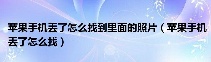 大家好,来宝来为大家解答以下问题,苹果手机丢了怎么找到里面的照片,苹果手机丢了怎么找很多人还不知道,今天让我们一起来看看吧!