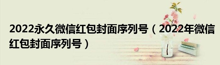 1、222微信红包封面的序列号是很多小伙伴想要的,可以用来兑换红包封面。那么边肖在这里就免费为大家带来一些2022微信红包封面的11位兑换码,2022永久微信红包封面的序列号分享给大家。感兴趣的朋友,快来看看吧!