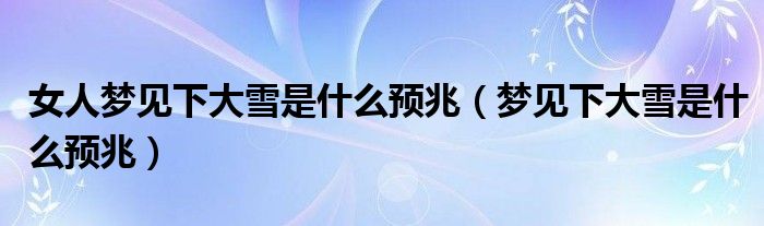 关于女人梦见下大雪是什么预兆,梦见下大雪是什么预兆这个很多人还不知道,今天菲菲来为大家解答以上的问题,现在让我们一起来看看吧!