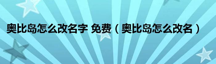 奥比岛怎么改名字 免费(奥比岛怎么改名)