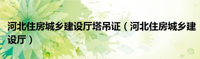 关于河北住房城乡建设厅塔吊证,河北住房城乡建设厅这个很多人还不知道,今天菲菲来为大家解答以上的问题,现在让我们一起来看看吧!