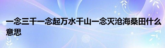 关于一念三千一念起万水千山一念灭沧海桑田什么意思这个很多人还不知道,今天菲菲来为大家解答以上的问题,现在让我们一起来看看吧!