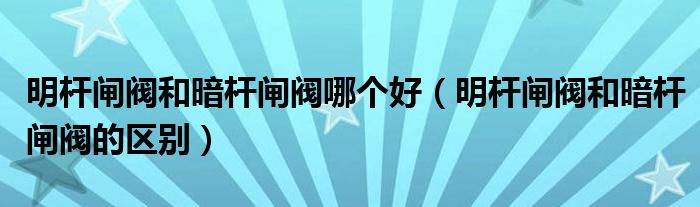 明杆闸阀和暗杆闸阀哪个好(明杆闸阀和暗杆闸阀的区别)