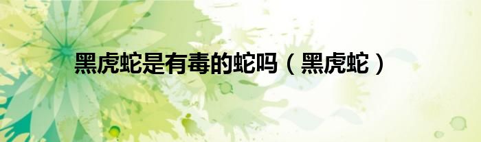 关于黑虎蛇是有毒的蛇吗,黑虎蛇这个很多人还不知道,今天菲菲来为大家解答以上的问题,现在让我们一起来看看吧!