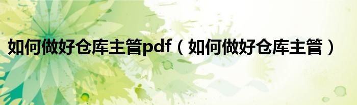 关于如何做好仓库主管pdf,如何做好仓库主管这个很多人还不知道,今天菲菲来为大家解答以上的问题,现在让我们一起来看看吧!