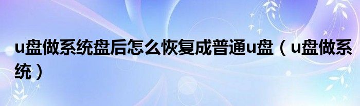 u盘做系统盘后怎么恢复成普通u盘(u盘做系统)