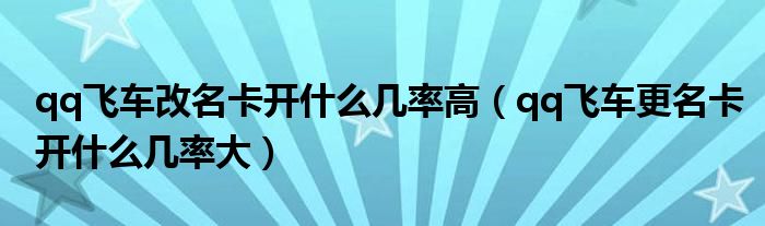 关于qq飞车改名卡开什么几率高,qq飞车更名卡开什么几率大这个很多人还不知道,今天菲菲来为大家解答以上的问题,现在让我们一起来看看吧!