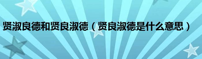 贤淑良德和贤良淑德(贤良淑德是什么意思)