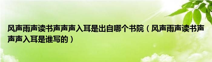 风声雨声读书声声声入耳是出自哪个书院(风声雨声读书声声声入耳是谁写的)