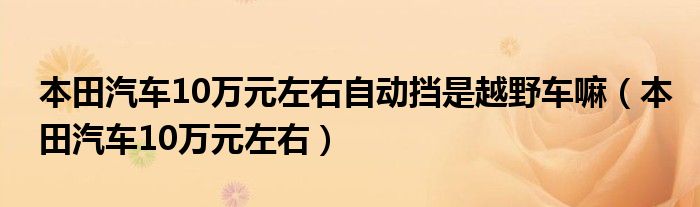 关于本田汽车10万元左右自动挡是越野车嘛,本田汽车10万元左右这个很多人还不知道,今天菲菲来为大家解答以上的问题,现在让我们一起来看看吧!