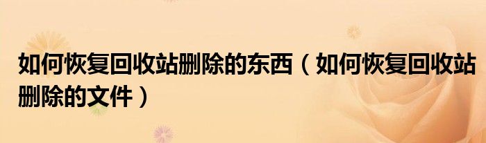 大家好,小飞来为大家解答以上问题,如何恢复回收站删除的东西,如何恢复回收站删除的文件很多人还不知道,现在让我们一起来看看吧!