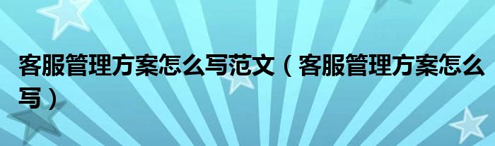 关于客服管理方案怎么写范文,客服管理方案怎么写这个很多人还不知道,今天菲菲来为大家解答以上的问题,现在让我们一起来看看吧!