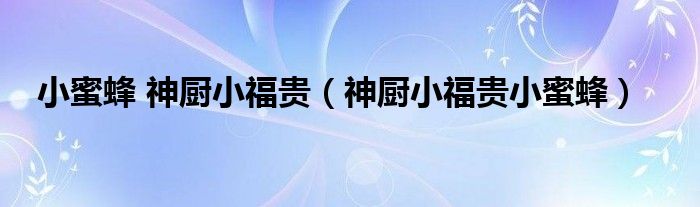 小蜜蜂 神厨小福贵(神厨小福贵小蜜蜂)