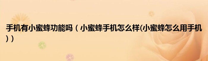 大家好,小常来为大家解答以上问题。手机有小蜜蜂功能吗,小蜜蜂手机怎么样(小蜜蜂怎么用手机)很多人还不知道,现在让我们一起来看看吧!