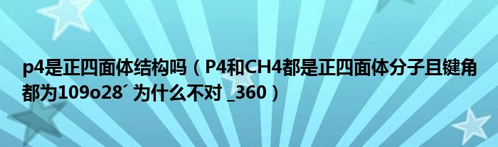 关于p4是正四面体结构吗,P4和CH4都是正四面体分子且键角都为109o28ˊ 为什么不对 _360这个很多人还不知道,今天菲菲来为大家解答以上的问题,现在让我们一起来看看吧!