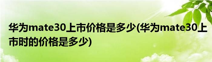 华为mate30上市价格是多少(华为mate30上市时的价格是多少)