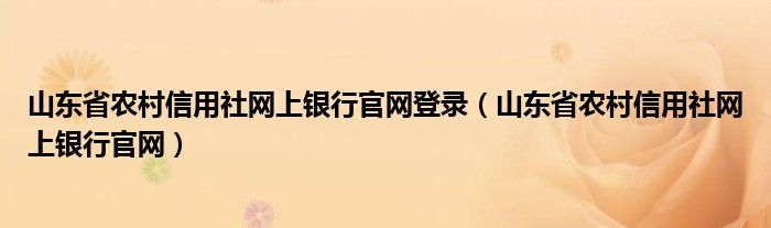 山东省农村信用社网上银行官网登录(山东省农村信用社网上银行官网)