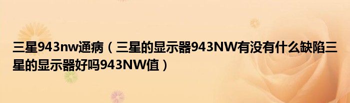 大家好,小常来为大家解答以上问题。三星943nw通病,三星的显示器943NW有没有什么缺陷三星的显示器好吗943NW值很多人还不知道,现在让我们一起来看看吧!