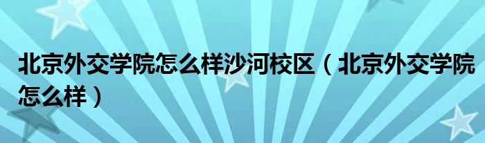 关于北京外交学院怎么样沙河校区,北京外交学院怎么样这个很多人还不知道,今天菲菲来为大家解答以上的问题,现在让我们一起来看看吧!