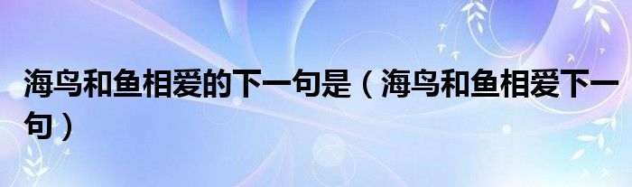 海鸟和鱼相爱的下一句是(海鸟和鱼相爱下一句)