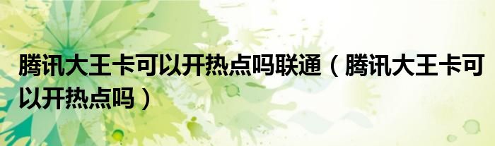 大家好,小晋来为大家解答以下问题,关于腾讯大王卡可以开热点吗联通,腾讯大王卡可以开热点吗很多人还不知道,今天让我们一起来看看吧!