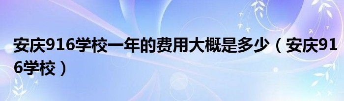 关于安庆916学校一年的费用大概是多少,安庆916学校这个很多人还不知道,今天菲菲来为大家解答以上的问题,现在让我们一起来看看吧!