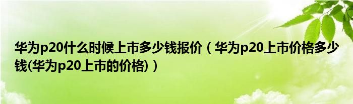 大家好,小常来为大家解答以上问题。华为p20什么时候上市多少钱报价,华为p20上市价格多少钱(华为p20上市的价格)很多人还不知道,现在让我们一起来看看吧!